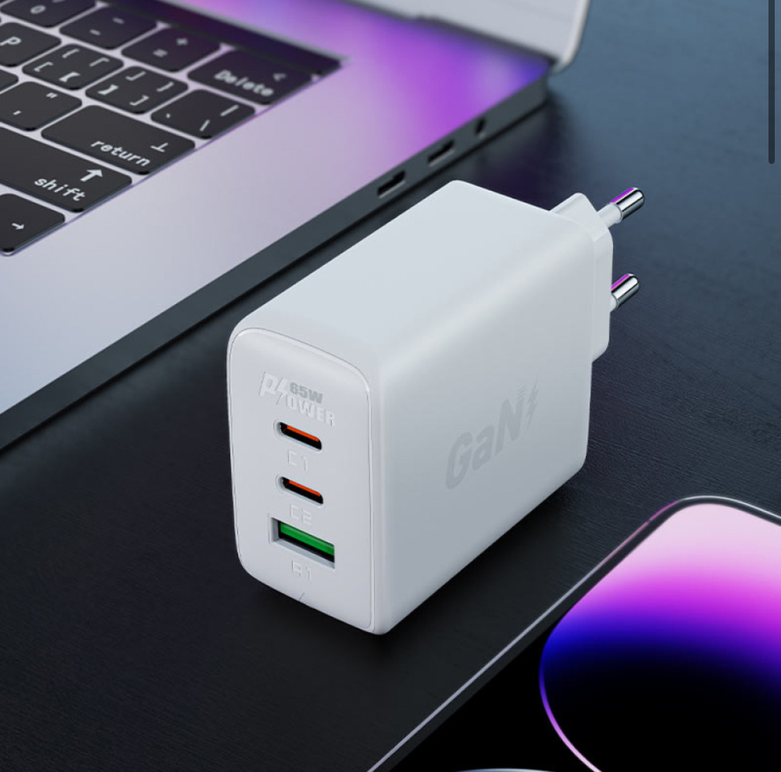 Мережевий зарядний пристрій AceFast A41 GaN PD65W 2USB-C 1USB Швидка зарядка